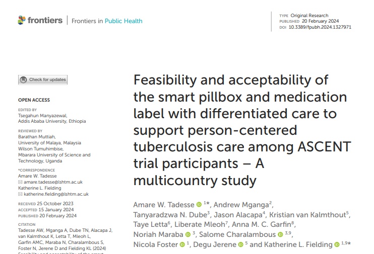 Feasibility and acceptability of the smart pillbox and medication label with differentiated care to support person-centered tuberculosis care among ASCENT trial participants – A multicountry study