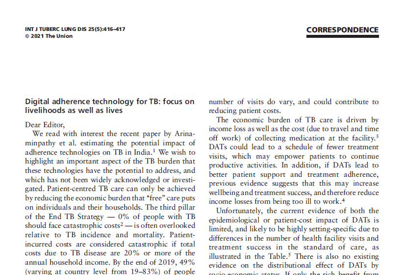 Effectiveness of digital adherence technologies in improving tuberculosis treatment outcomes in four countries: a pragmatic cluster randomised trial protocolMonday, August 26, 2024