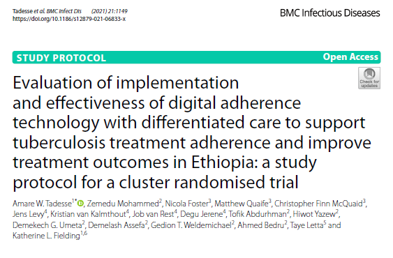 Evaluation of implementation and effectiveness of digital adherence technology with differentiated care to support tuberculosis treatment adherence and improve treatment outcomes in Ethiopia: a study protocol for a cluster randomised trialWednesday, November 10, 2021